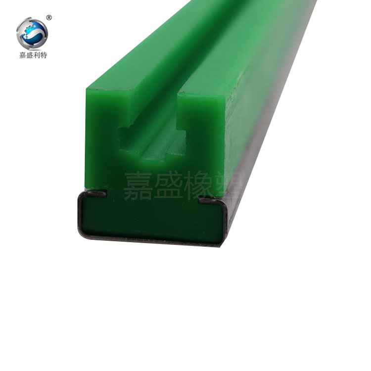 链条导轨外包钢槽和绿色部分导轨的配合精确,单边0. 15MM可确保配钢槽后的达到高精度的导向作用。